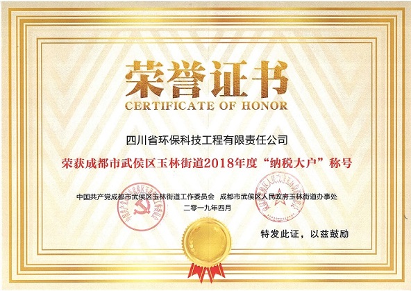 我公司自成立以來,一直堅(jiān)持誠信經(jīng)營、依法納稅,不斷實(shí)現(xiàn)經(jīng)濟(jì)效益和社會效益的“雙贏”。2018年度公司經(jīng)營良好,效益顯著,再次榮獲成都市武侯區(qū)玉林街道2018年度“納稅大戶”榮譽(yù)稱號。