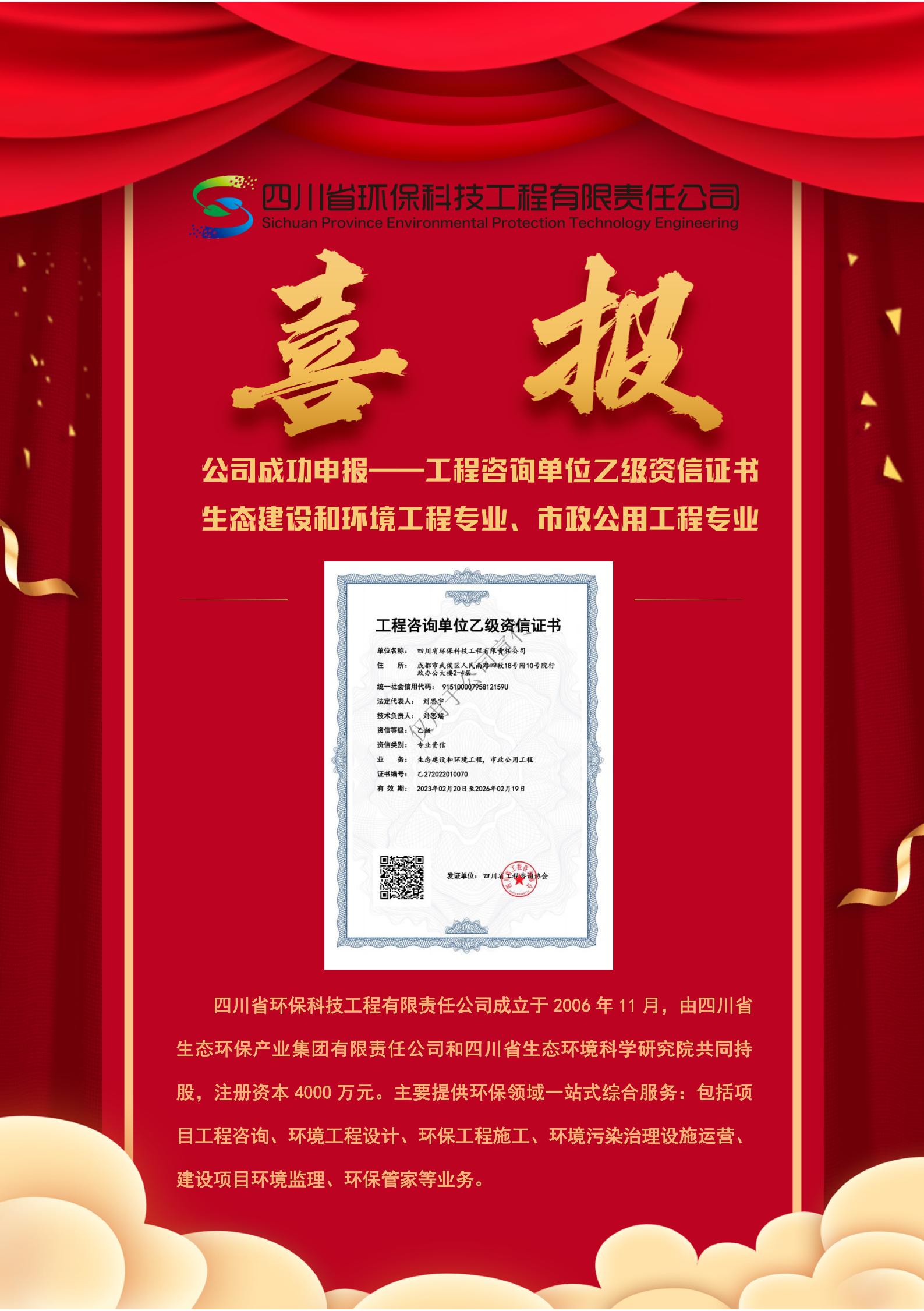 喜報 || 公司成功申報工程咨詢乙級資質