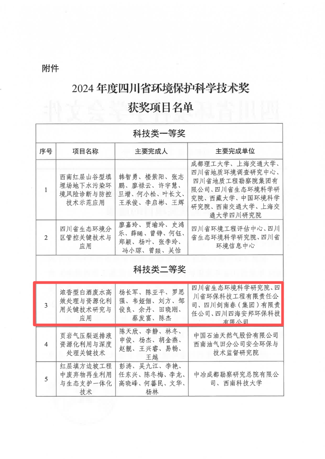 喜報(bào)!環(huán)科工程榮獲2024年度四川省環(huán)境保護(hù)科學(xué)技術(shù)獎(jiǎng)