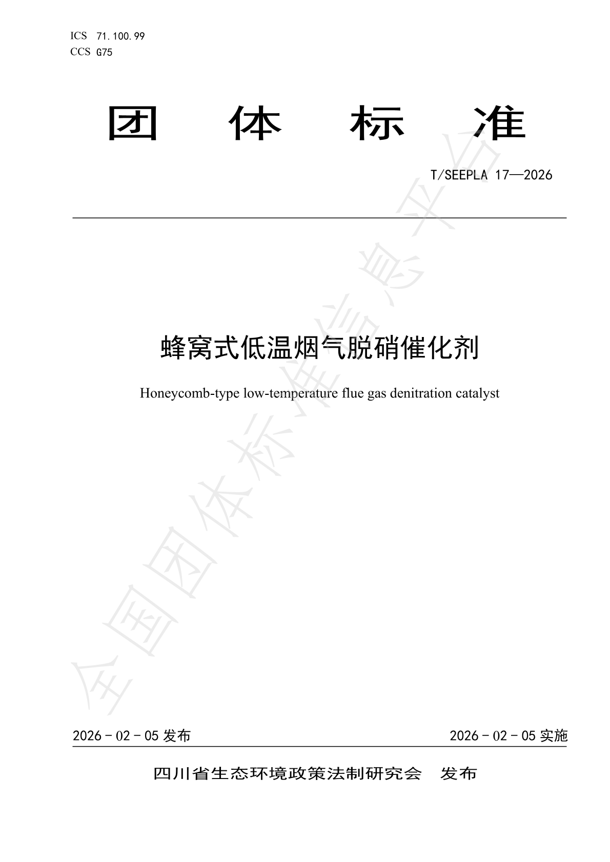 近日,四川省生態(tài)環(huán)境政策法制研究會正式發(fā)布《蜂窩式低溫煙氣脫硝催化劑》(T/SEEPLA 17-2026)團體標準,四川省環(huán)保科技工程有限責任公司、四川省環(huán)科院科技咨詢有限責任公司參與了標準編制工作。該標準聚焦蜂窩式低溫煙氣脫硝催化劑的產(chǎn)品規(guī)格、試驗方法、性能指標等關鍵內(nèi)容進行規(guī)范,填補了國內(nèi)低溫脫硝催化劑領域標準空白,有效提升了該類催化劑的標準化、規(guī)范化水平,為鋼鐵、水泥、焦化等非電行業(yè)低溫煙氣脫硝治理提供了重要技術依據(jù)。