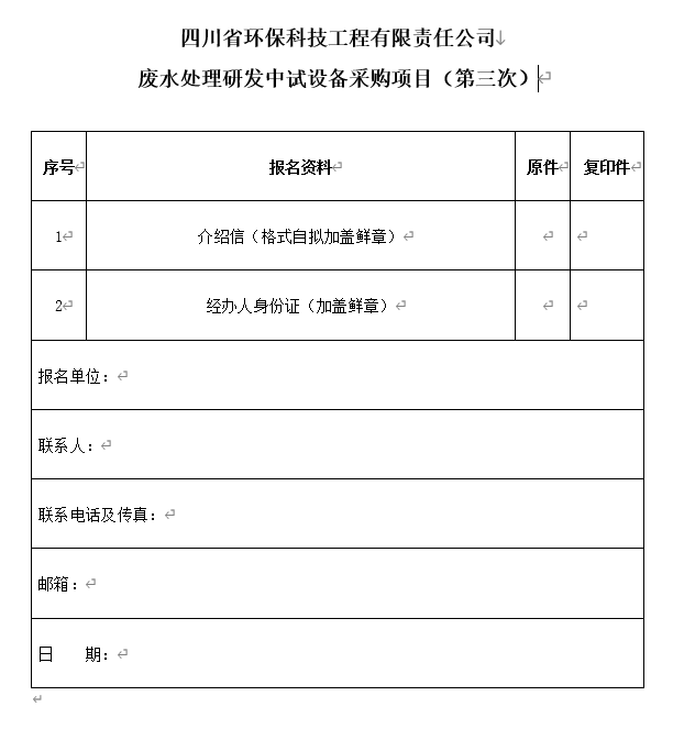 項目名稱:四川省環(huán)保科技工程有限責(zé)任公司廢水處理研發(fā)中試設(shè)備采購項目(第三次)