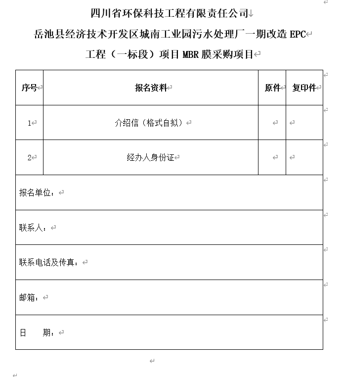 項(xiàng)目名稱:四川省環(huán)??萍脊こ逃邢挢?zé)任公司MBR膜采購項(xiàng)目